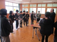 1年生が体育館で昔遊びをしました。来てくださったボランティアさん、保護者の方に教...