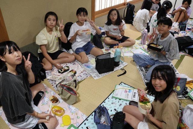 まず、「ライフパーク倉敷」に行きました。赤外線カメラ、てこの原理を使った体重測定、イライラ棒など、多種多様な展示があり、体験しながら科学を学ぶことができました。そして、楽しみにしていたお弁当。グループでおいしくいただきました。