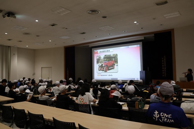 その後は、「三菱自動車水島製作所」に行きました。一人一台トランシーバーを貸していただいて、作業工程を見学しながら説明を聞きました。車の製造過程について詳しく学ぶことができました。