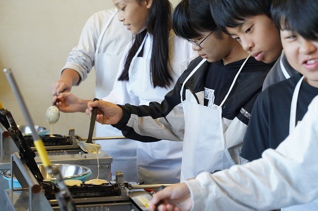 2日目はもみじ饅頭づくりを体験し、宮島水族館の見学もしました。