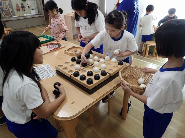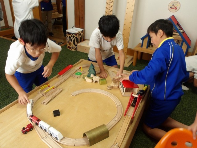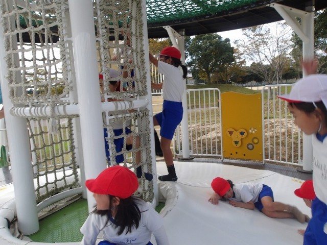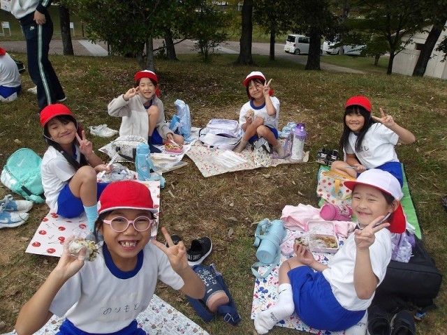 まず、「現代玩具博物館・オルゴール夢館」で、オルゴールを聴いたり、木のおもちゃで遊んだりしました。「きれい!!」「すごーい!」と、素敵な反応の子どもたち。ほっこりとした時間が流れました。「奈義町総合運動公園」では、お弁当を食べた後、遊具で遊んだり、どんぐりを拾ったりしました。秋空の下、たっぷり遊べて、大満足の遠足になりました。
