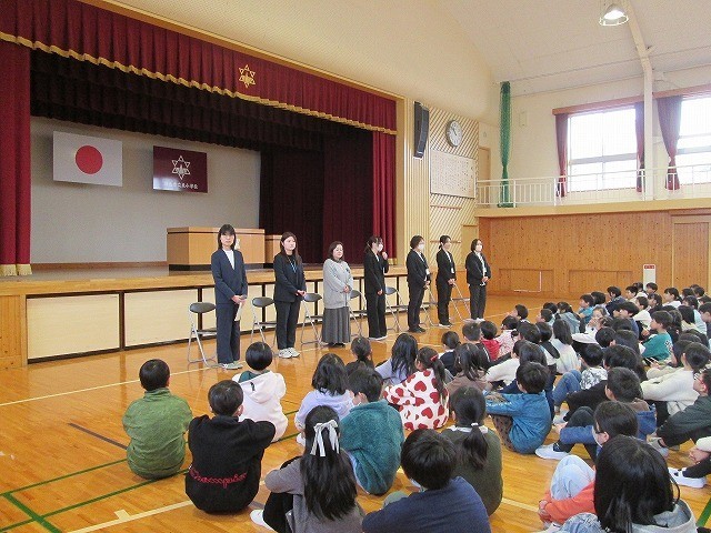 その後、今月で東小学校から異動される先生方の紹介とお別れの式もありました。