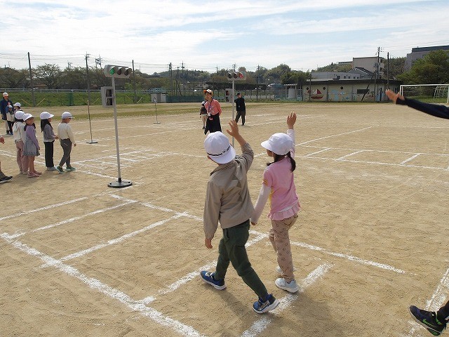 1年生は、安全な歩き方について勉強しました。小学生になったら、自分で歩いて行動することが増えます。横断歩道の渡り方や道路の右側を安全に歩くことなどを勉強していました。