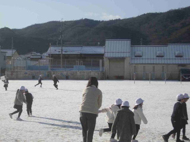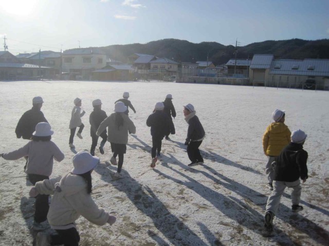 うっすらと雪の積もった校庭に飛び出し、力一杯遊びました。