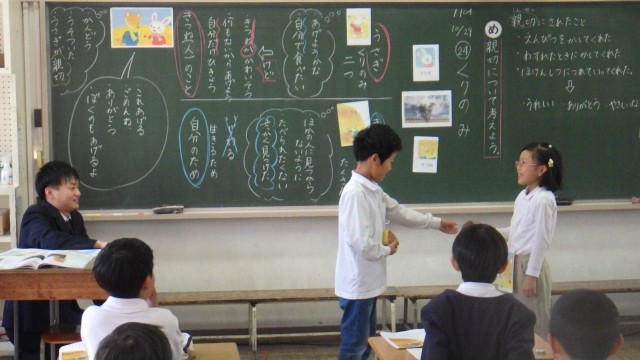 4年生と2年生が校内授業公開を行い、道徳の授業の様子を教職員が参観しました。