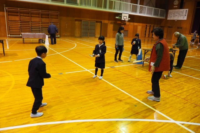 地域のボランティアの皆様にご協力いただき、1年生の昔あそびの会が行われました。