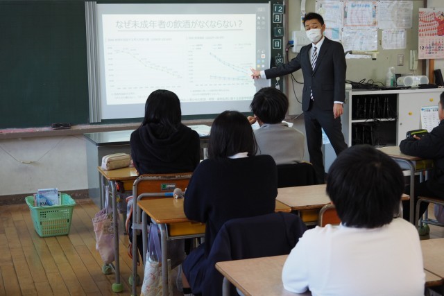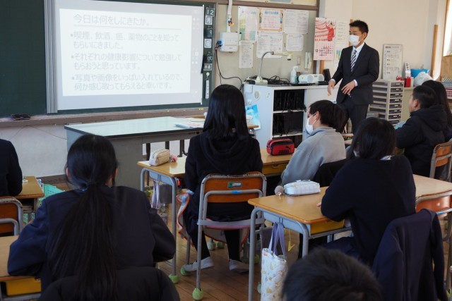 未成年者がなぜ喫煙や飲酒をしてはいけないのか、法律や健康被害(癌のリスク)などの面から色々なデータを示しながらわかりやすく教えてくださいました。