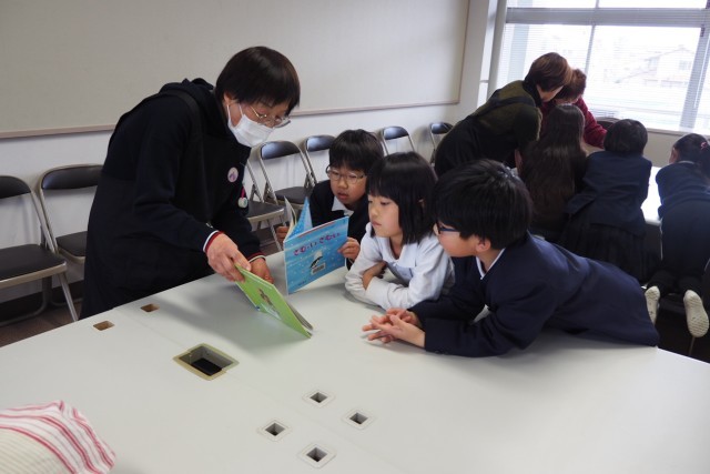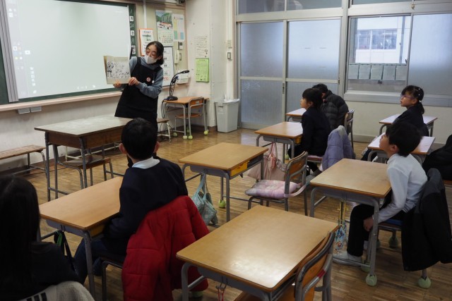 朝学習の時間には1年生と2年生の教室で、昼休みには希望者を対象にふれあいルームで行われました。