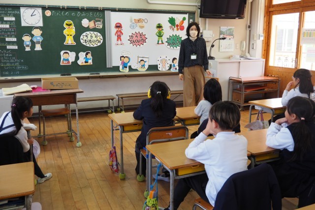 戸島学校給食センターから栄養教諭の先生をお招きして、1年生の交流給食と栄養指導を実施しました。
