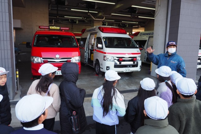 津山圏域消防組合消防本部へ3年生が見学に行かせていただきました。