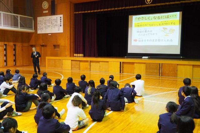 校長先生のお話は「やさしさ」についてでした。