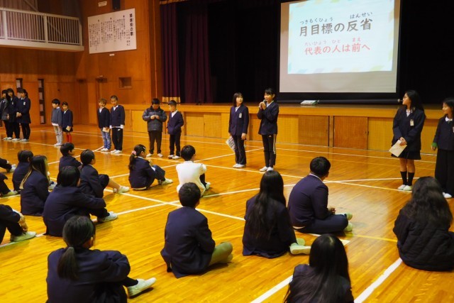 3月2日(月)今年度最後の全校朝の会を行いました。