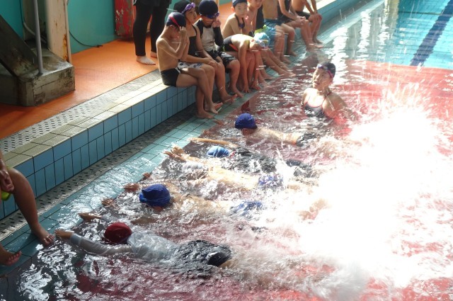 2年生は、久し振りでしたので、水を思い出し、水に慣れるところから始めました。