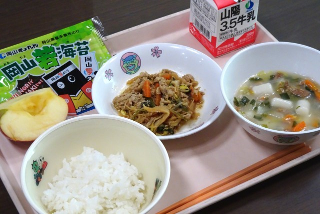 メニューは「セルフキンパ巻き」「トッポギスープ」「りんご」でした。