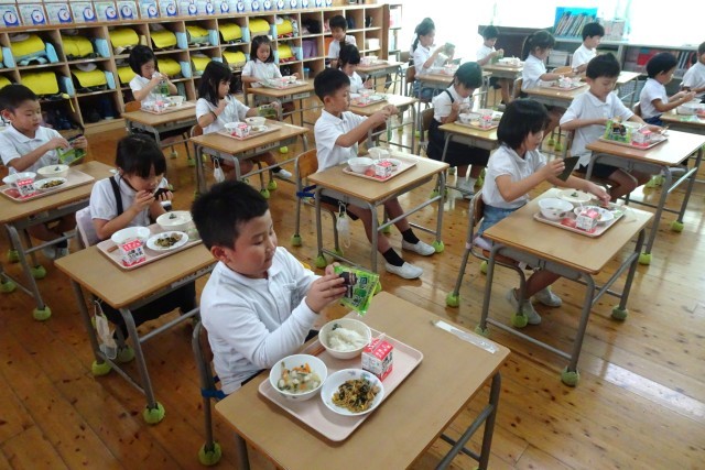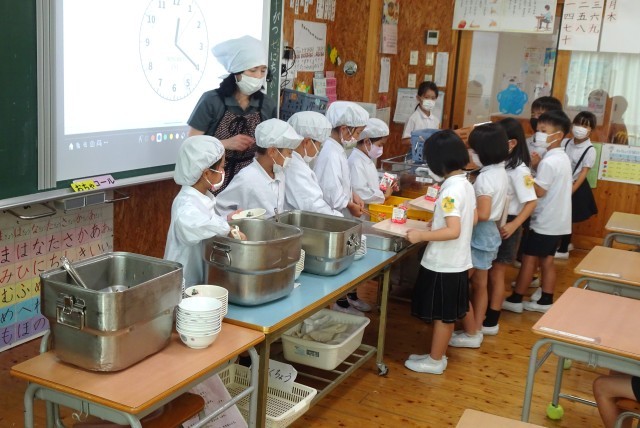 1年2組は、ずいぶん給食の準備が上手になりました。