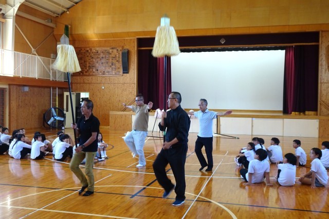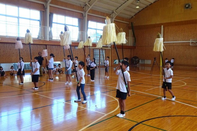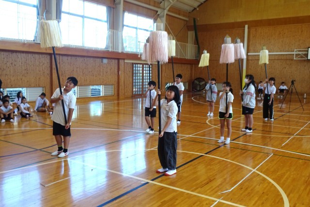 やりが重く感じて、うまく踊れなかったという声も聞かれましたが、みんな、リズムに合わせて楽しそうに踊っていました。
