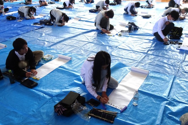 6mの巻物に出来上がった作品は、一つ一つが個性的で、自分らしさを表現できていました。