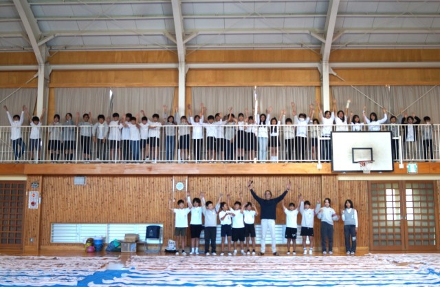 ローマ在住で、国内では津山を拠点に彫刻家・画家として活躍されている武藤順九先生をお迎えして、6年生の墨絵体験を行いました。