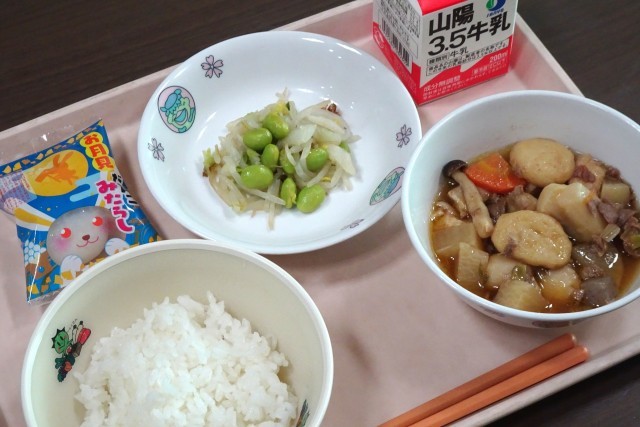 メニューは「芋煮」「枝豆のあえ物」「月見だんご」でした。