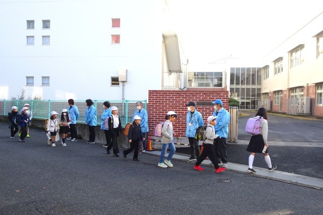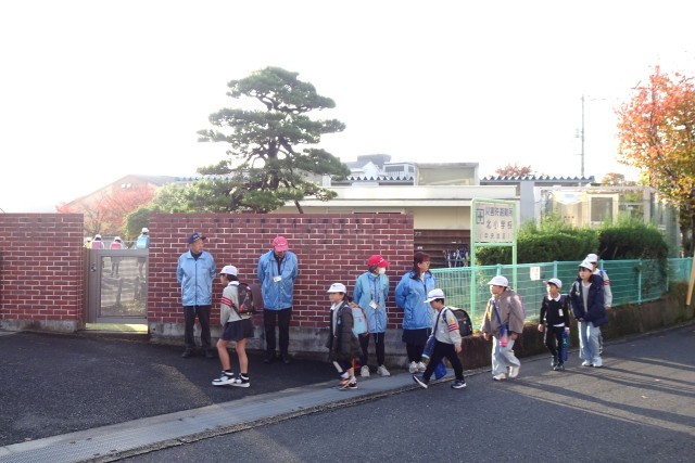 通学班で登校してくる子どもたちに、「おはようございます!」と声をかけて迎えてくださり、子どもたちも元気な声であいさつを返していました。