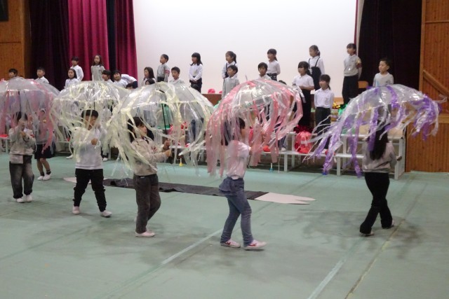 登場するたくさんの海の生き物は、子どもたちの手作りです。