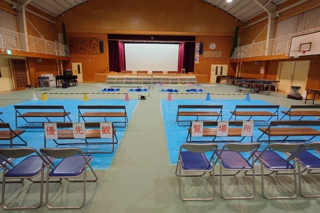 夕方には、学習発表会の会場準備が整いました。