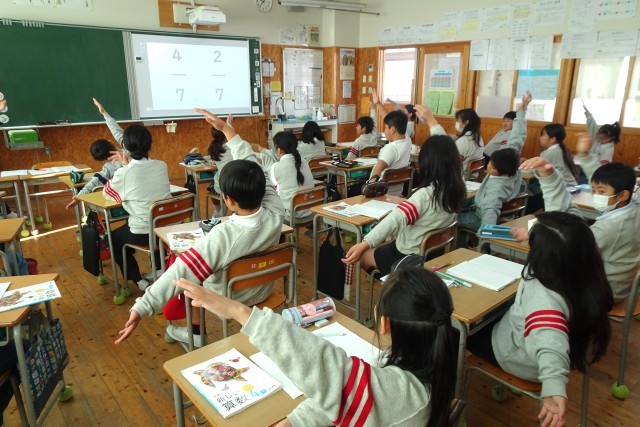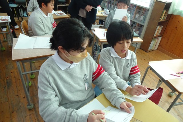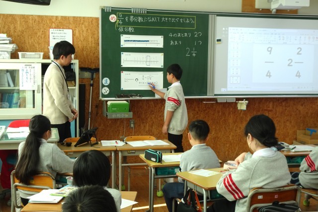 算数の「分数をくわしく調べよう」の単元で、仮分数と帯分数の大きさの比べ方を考えました。