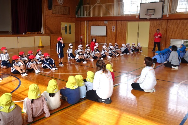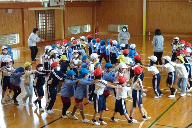 体育館で一緒にジャンケン列車やドンジャンケンなどをして楽しみました。