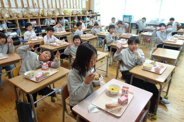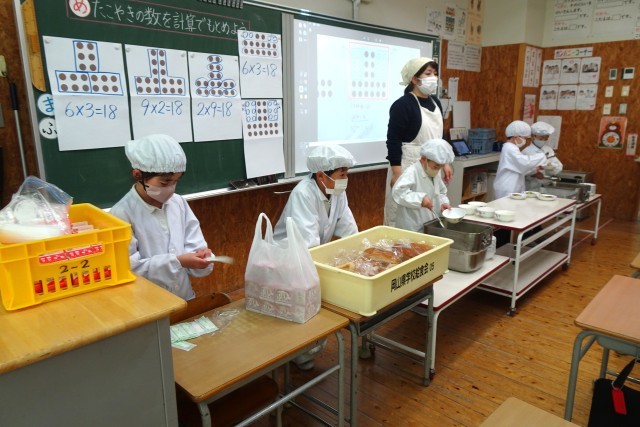 2年2組は、給食の準備にもすっかり慣れ、上手に準備をしていました。