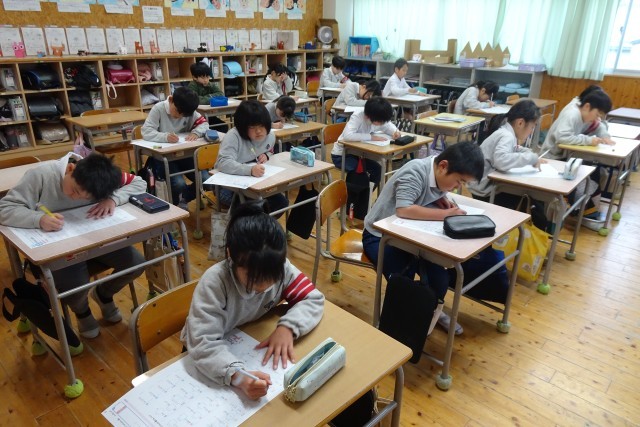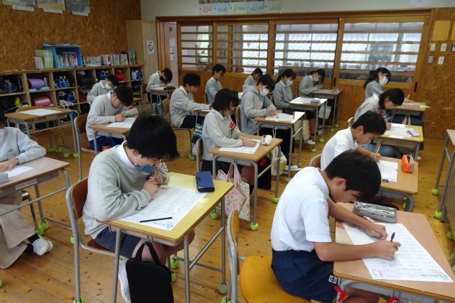 月に1回、朝のくすのきタイムに、全学年全学級で一斉漢字テストを行っています。