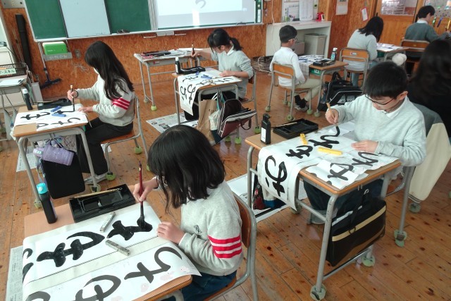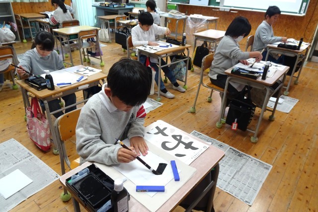 これまでの学習の成果で、道具の用意や筆遣いなどは、とても上手になっていました。