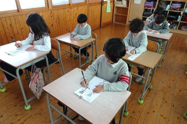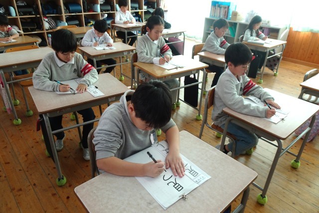 フェルトペンの持ち方や姿勢を意識して、みんな練習を頑張っていました。