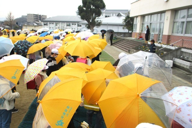 2学期最後の日は、小雨の中での一斉下校となりました。