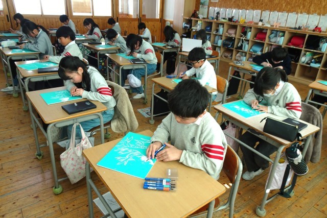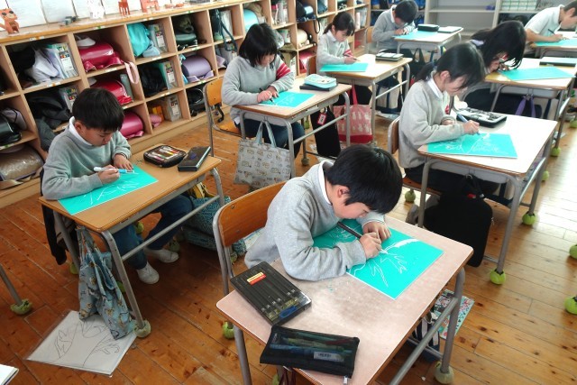 3年生は図画工作の学習で木版画の作品づくりに取り組んでいます。