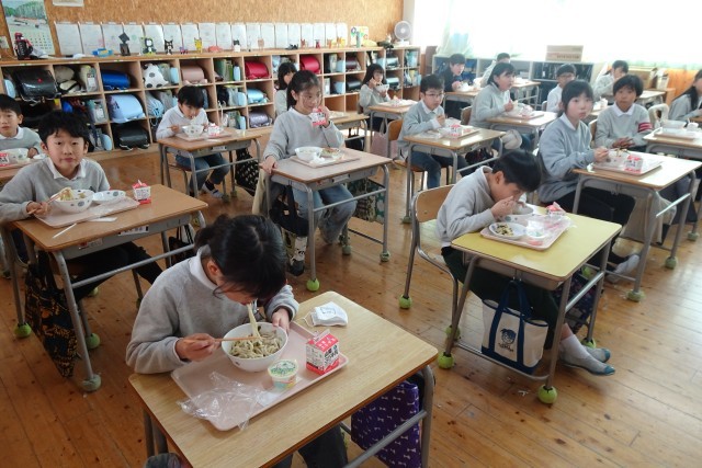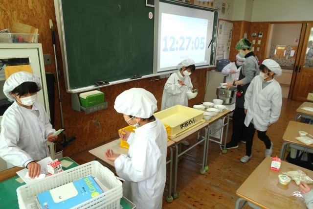 3年1組は、給食当番が協力しながら上手に準備をしていました。