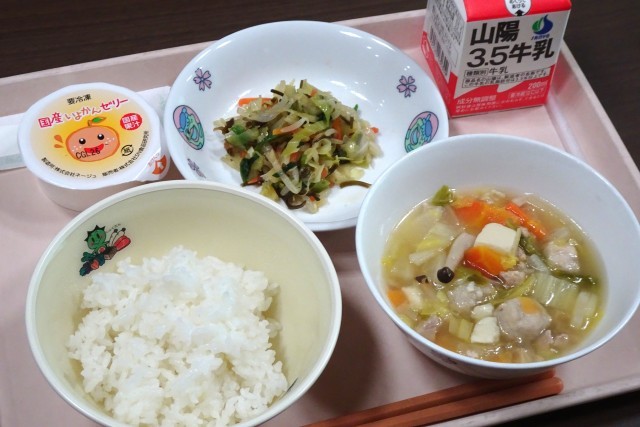 メニューは「合格祈願鍋」「よろこんぶあえ」「いいよかんゼリー」でした。