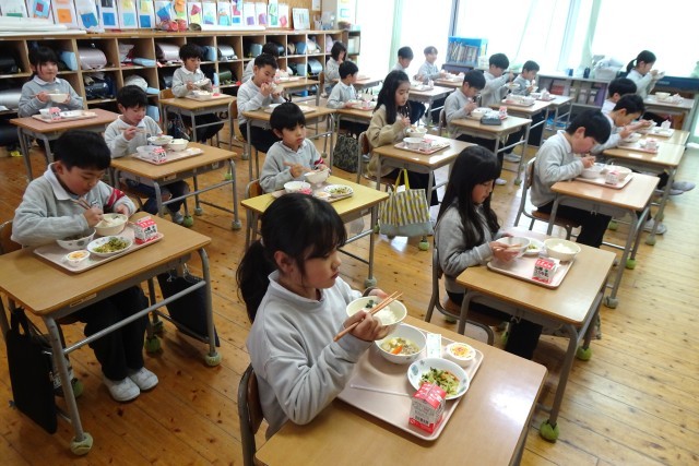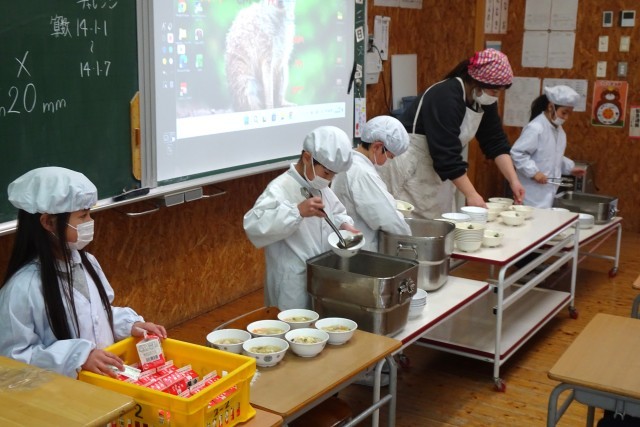 2年2組は、給食の準備にもすっかり慣れ、上手に準備をしていました。