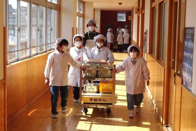 3年2組は、給食当番が協力しながら上手に準備をしていました。