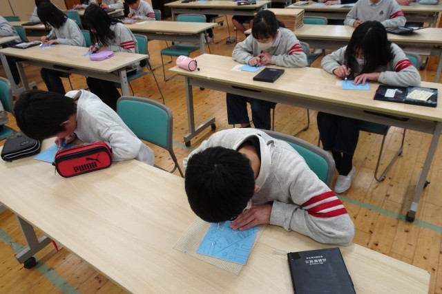 5年生は、図画工作の学習で一般連結版画の作品づくりに取り組んでいます。
