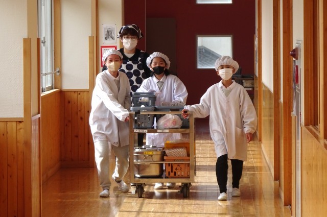 4年2組は、配膳室まで一番遠いのですが、協力してワゴンを運んで準備をしていました。