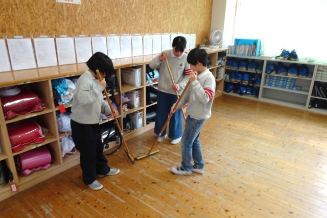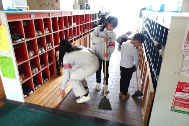 今日も子どもたちは、縦割り班掃除を頑張っていました。