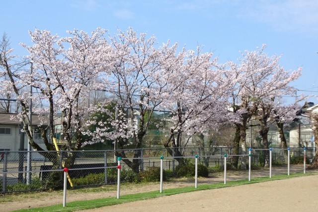 暖かい春の日差しのもと、校内の桜が満開となりました。昨年より少し早いようにも感じます。桜の花が青空に映えて、とてもきれいです。