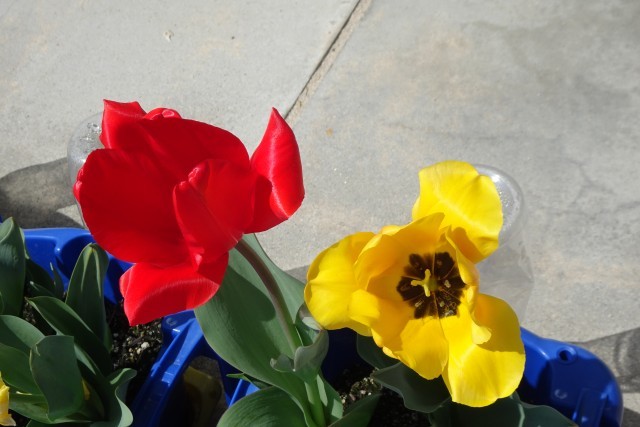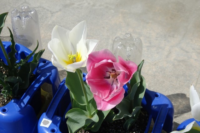 今日も、春らしい1日となりました。昨年度の1年生が秋に球根を植えて育てていたチューリップが、とてもきれいに咲いています。