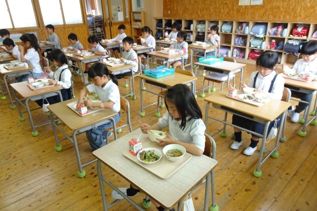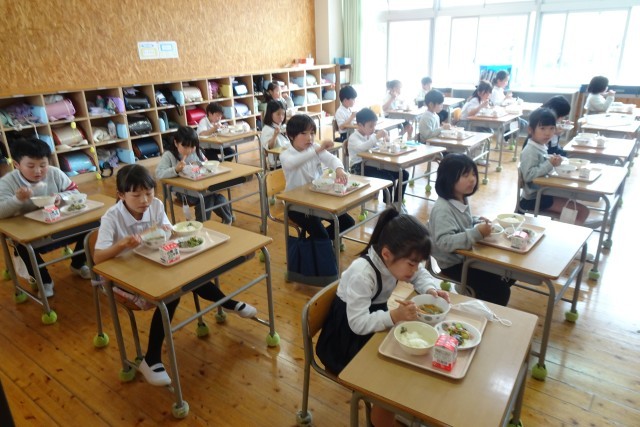 2年生の子どもたちは、ずいぶんお兄さんお姉さんになったように感じます。上手に準備をして、楽しそうに給食を食べていました。