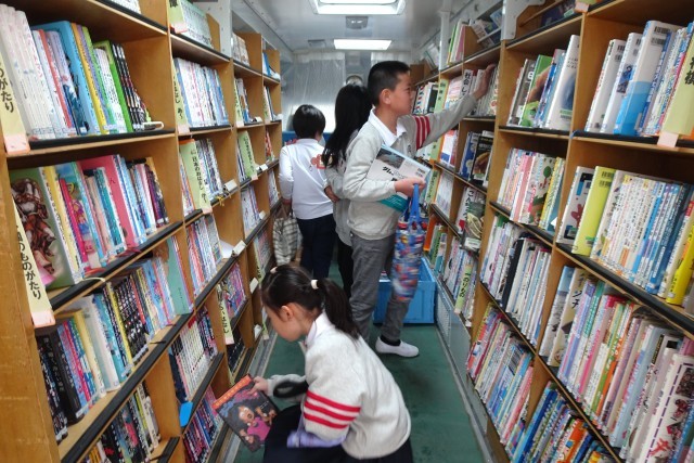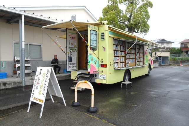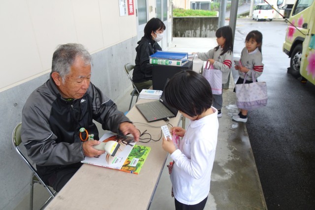 子どもたちは、「ぶっくまる」の来校をとても楽しみにしています。今日も、読書好きな子どもたちが本を借りに来ていました。