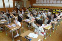 朝の会をしている姿、勉強を頑張っている姿などを見ていただきました。