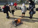 1、2年生がとんどをおこないました。 とんどには、地域のボランティアの方々も参加...