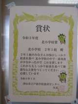 戸島給食センターの「残食調べ」で、北小の中で2年1組が第1位になり、表彰されまし...