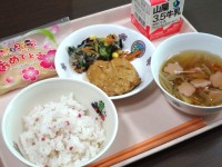 ☆2月17日(月)☆ 今日の給食は、「卒業祝い献立」でした。メニューは「梅香りご...