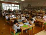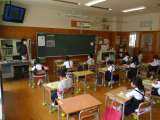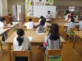 1年生は算数の授業でした。 テレビに問題をうつして、一生懸命考えました。 また、...